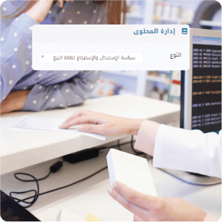 النظام يوفر القدرة على استرجاع فواتير الأدوية التي تم إرجاعها أو استبدالها إمن قبل العميل، مع إمكانية ضبط الصلاحيات للتحكم في هذه العملية ، مع إمكانية إضافة سياسة الاستبدال أو الاسترجاع الخاصة بفاتورة العميل من لوحة التحكم مع امكانية ادارة هذه السياسات ومنع ارجاع اي منتج او استبداله بعد انتهاء المدة المسموحة. وكذلك يمكن الارجاع بطرق دفع متعددة (كاش، شبكة، الخ).ً